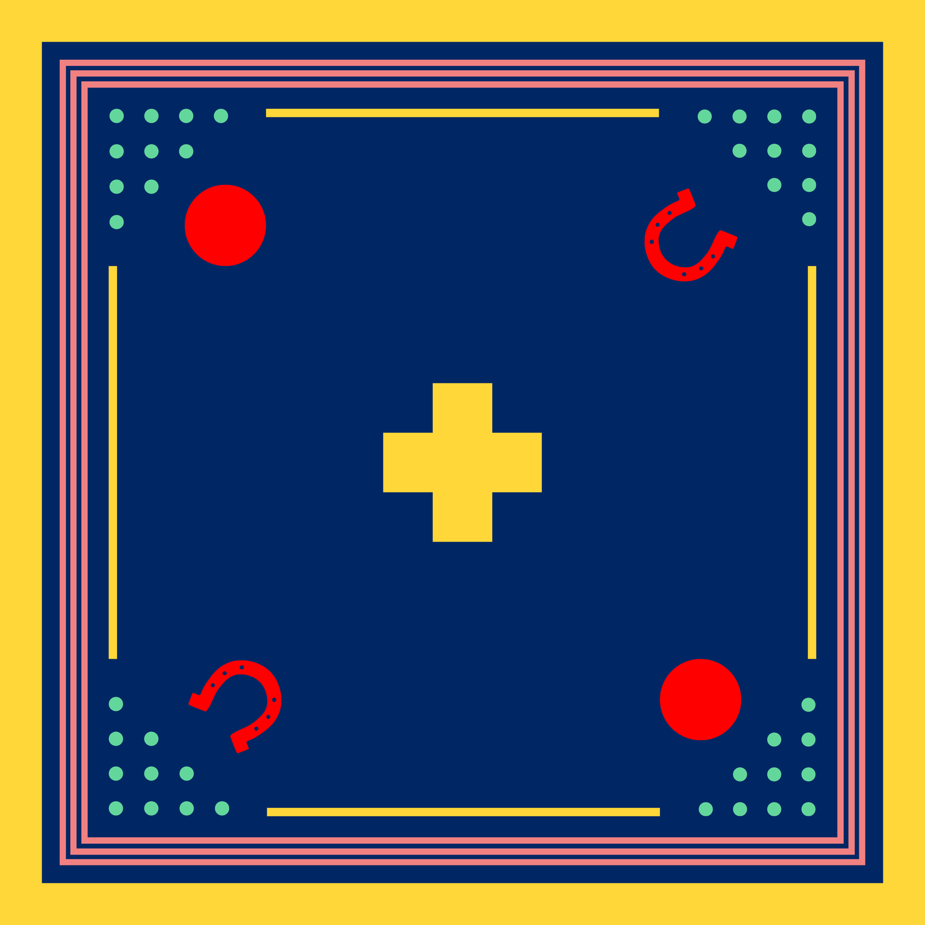 Archie Bandana No. 30 - Horseshoe, Dots and Plus Sign on Dark Blue