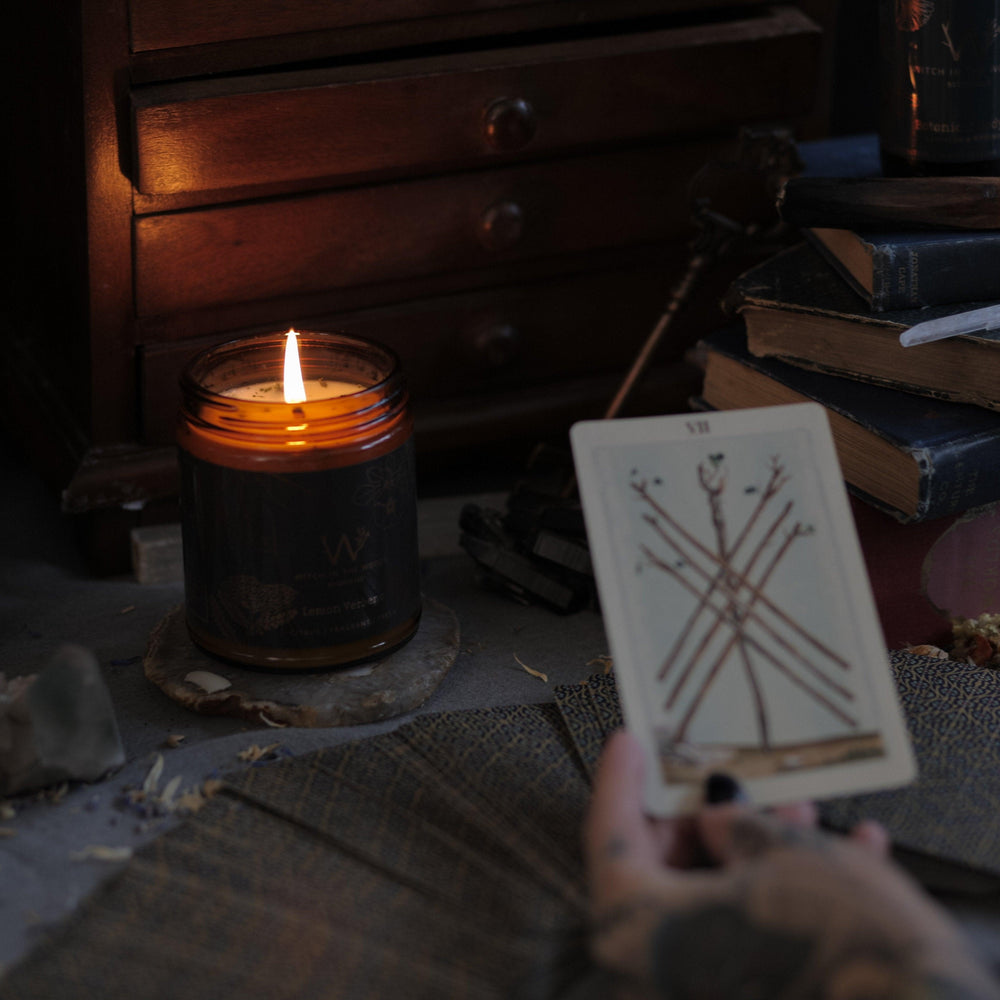 This vibrant candle boasts the bright, herbaceous scent of lemon verbena, with a sweet lemony aroma and gentle floral undertones that will revive your senses. Its invigorating fragrance is an herbal tonic that boosts mood and lifts the spirit. Light it up to bring a fresh, energizing aura to your sacred space.
